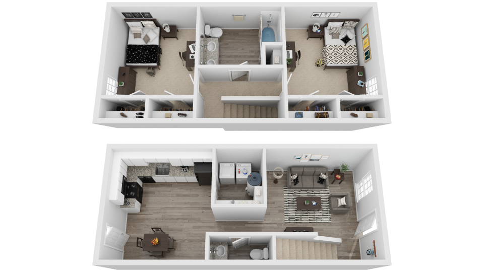 Discover The Social Block and Townhomes® student apartments in Starkville, Mississippi. Just minutes from Mississippi State University, our community offers spacious unfurnished and furnished 2- and 4-bedroom floorplans with your choice of apartment or townhome layouts designed for comfort. Enjoy in-home washers and dryers, included high-speed Wi-Fi, and convenient access to the SMART bus for an easy ride to MSU. Our newly renovated 4-bedroom apartments feature refreshed kitchens, new appliances, and modern fixtures. When you’re not relaxing at home, take a dip in our resort-style pool, stay fit in our 24/7 fitness center, or study in the modern business lounge. Stay close to friends, campus, and everything Starkville has to offer.